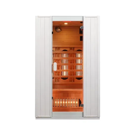 Бұл екі адамға арналған алыс инфрақызыл құрғақ сауна бөлмесі өзінің жұқа түйіршігімен, тамаша тұрақтылығымен және жоғары температуралы ортада ұзақ мерзімді беріктігімен танымал гелок ағашынан жасалған премиум интерьерге ие. Ағаштың жеңіл табиғи хош иісі және жылы, тегіс жанасуы бар, бұл үйдегі табиғи және жоғары деңгейлі СПА атмосферасын жасайды.