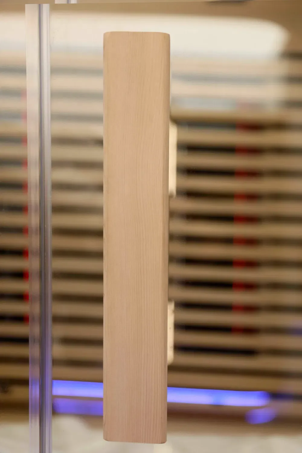 • Ыңғайлы және тыныш сауна атмосферасын жасайтын тығыз және берік құрылымы, мөлдір табиғи дәндері және әлсіз табиғи ағаш хош иісі бар, импорттық канадалық Hemlock қатты ағашынан жасалған;