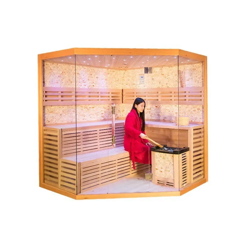 Бұл 3 жақты шыныдан жасалған интеллектуалды басқару жүйесі бар Hemlock саунасы негізгі компоненттерден егжей-тегжейлі керек-жарақтарға дейін ұқыпты шеберлікпен жоғары сапалы материалдарды, мөлдір дизайнды, интеллектуалды басқаруды және қауіпсіздік кепілдіктерін біріктіреді. Бос емес кестелер кезінде кәсіби сауна тәжірибесі үшін үйде жеке демалыс орны ретінде немесе жоғары сапалы қызметтерді ұсыну үшін қонақүйлер, СПА-клубтар және фитнес орталықтары сияқты коммерциялық орындарда пайдаланылса да, ол әртүрлі қажеттіліктерді өте жақсы қанағаттандырады — сізге ыңғайлы, сау және кәсіби сауна тәжірибесін жасайды.