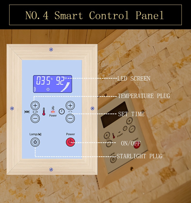 - Температура сенсоры: біркелкі жылытуды қамтамасыз ететін әртүрлі аймақтардағы температура өзгерістерін дәл түсіру үшін саунаның бүйір қабырғасына орнатылған.