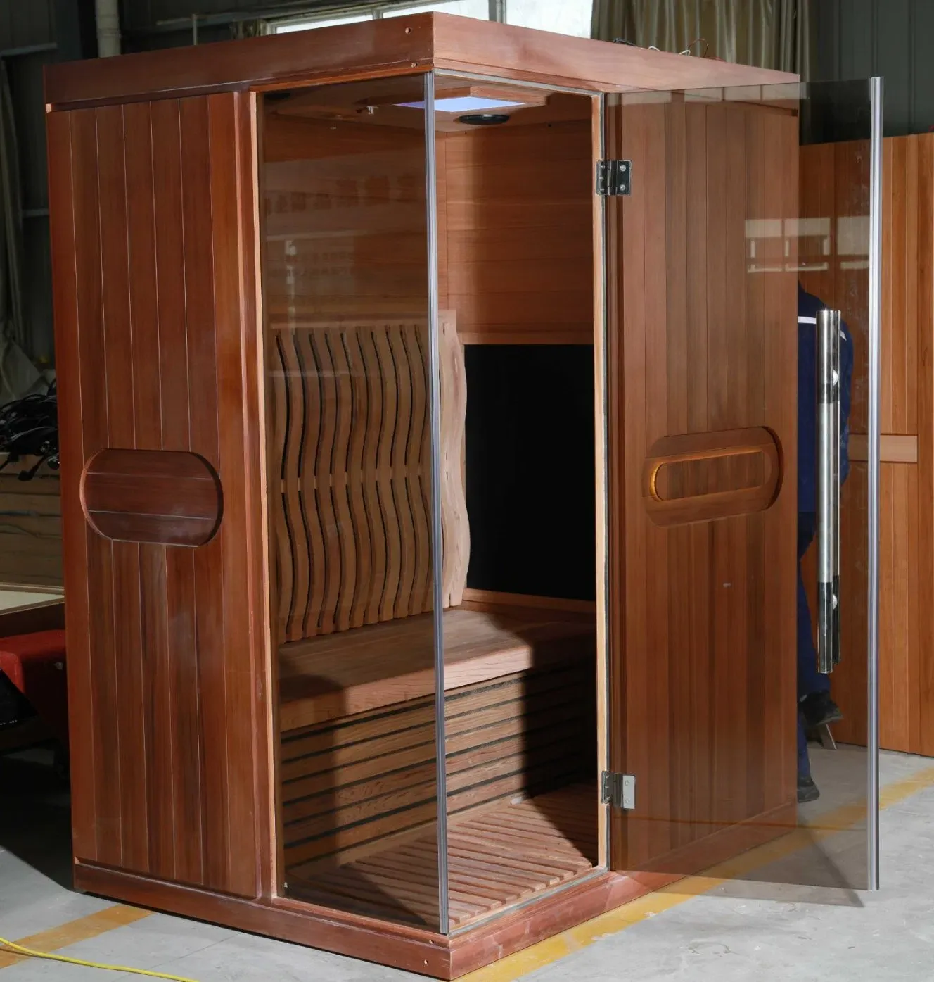 Бұл 2 адамға арналған инфрақызыл сауна заманауи дизайнды емдік функционалдықпен үйлестіреді, үйде сауықтыру үшін өте қолайлы. Ұзақтығы мен табиғи хош иісімен бағаланатын жоғары сапалы қанық ағашынан немесе канадалық қызыл балқарағайдан жасалған, ол озық алыс инфрақызыл жылыту технологиясы арқылы саунаның жоғары тәжірибесін береді.