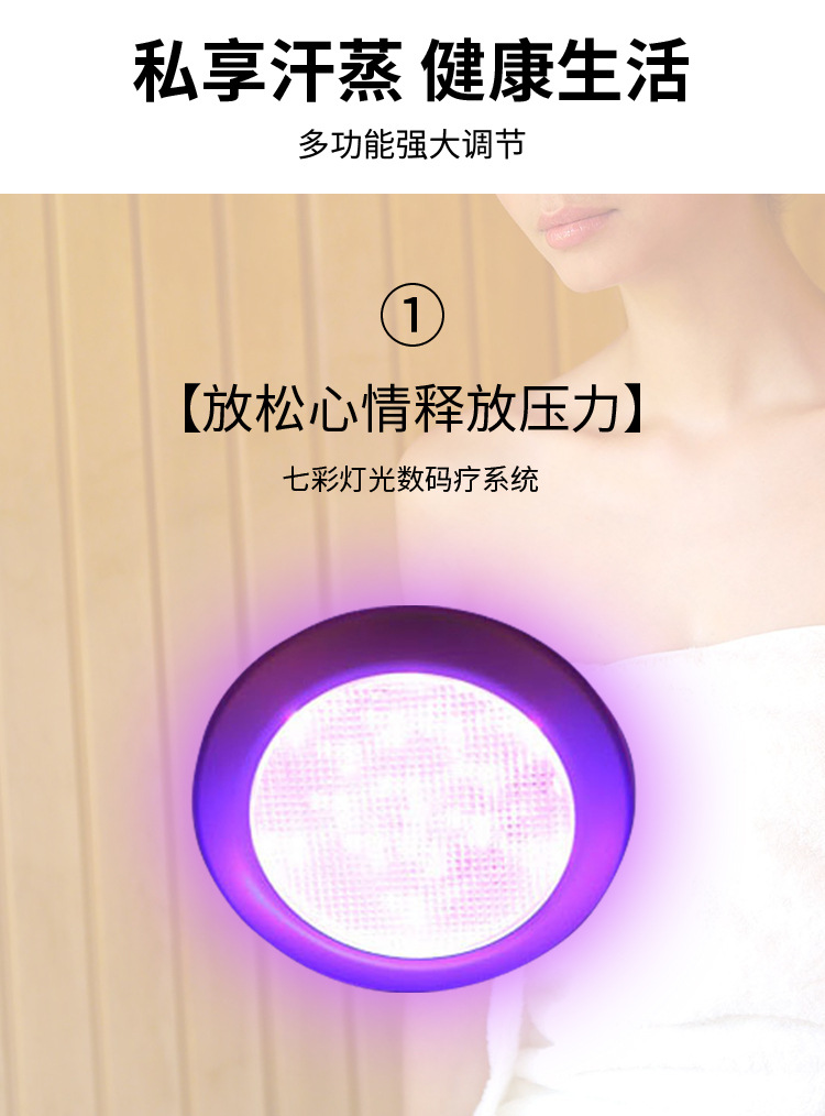 Негізгі технология: Бұл өнім қоршаған ауаны емес, денені тікелей жылытатын алыс инфрақызыл қыздыру технологиясын пайдаланады. Бұл әдіс әдеттегі жоғары қызу сауналарына қарағанда жұмсақ, температура әдетте 50°C - 65°C аралығында болады, бұл оны қатты ыстықсыз детоксикацияны қалайтындар үшін өте қолайлы етеді.