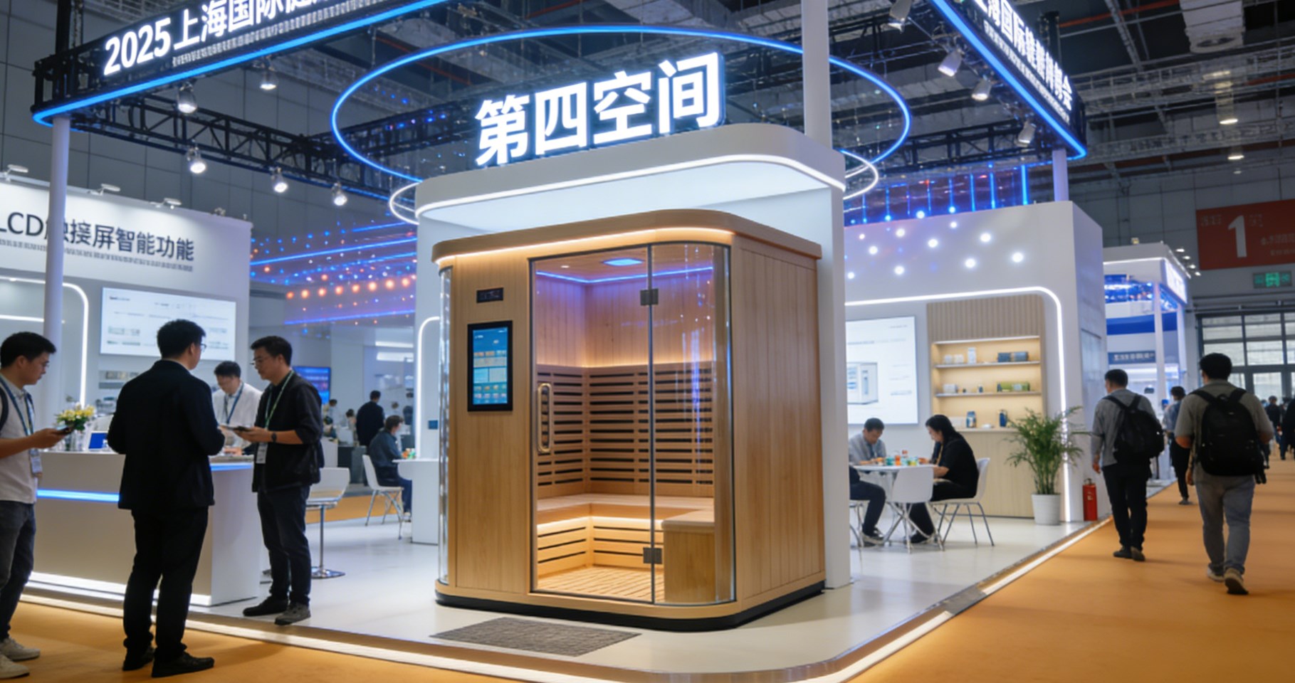 Жақында «Шанхай» халықаралық денсаулық өнеркәсібі ЭКСПО, «Төртінші орын» тұжырымдамасы аяқталдыСауна бөлмесіС.Ужоу Кангжияұлы көрсеткен компаниялар назар аударды. Өнім LCD сенсорлы экранымен, Tiktok Live Crofction интерфейсімен және Дауыстық температураны реттеу функциясымен жабдықталған, ол пайдаланушы анықталған температура қисықтары мен хош иісті жүйе (мысалы, лимон шөптерінің эфир майын 80 ₸, менде терлеу композициясын бақылау үшін байланыстырады).