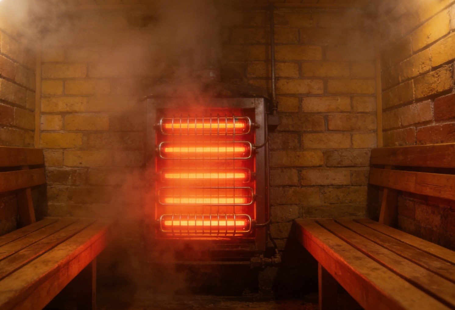 ХХ ғасырдың аяғынан 21-ші ғасырдың басынан бастап сауна өнеркәсібі металлға төзімділік сымдарына және кварцтың түтіктеріне негізгі жылу материалдары ретінде, индустрияның бастапқы кезеңінде негізгі таңдау болып табылады. Бұл материалдар электр тогының есік эффектісі арқылы жылумен, жетілген технологиялармен және арзан бағамен, саунаны коммерциялық кеңінен насихаттауға негіз қалайды.