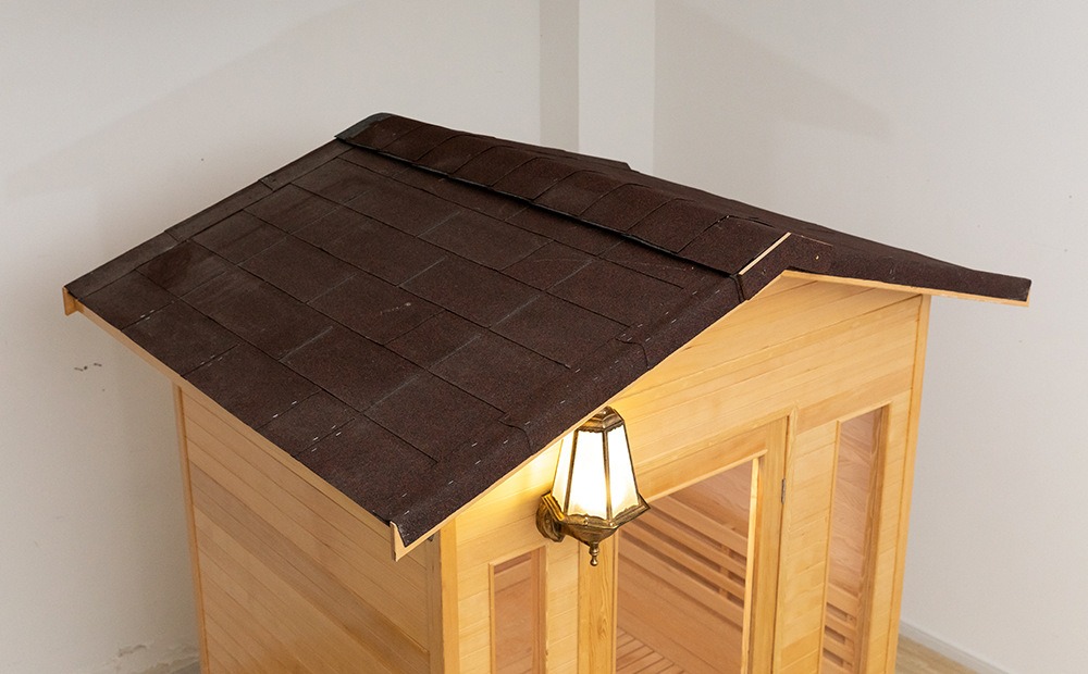 Төбесі көп қабатты су өткізбейтін және күннен қорғайтын құрылымды қабылдайды. Кеңейтілген карниз жаңбыр суының гемолок эрозиясын тиімді түрде бөгей алады, бұл өнімді әртүрлі сыртқы орталарда тұрақты пайдалануды қамтамасыз етеді. Жалпы пішін гелоктың табиғи құрылымын фэншуй үстіңгі әйнек есігімен және ретро қабырға шамымен ақылды түрде үйлестіре отырып, ауладағы «пайдалануға болатын ландшафт ерекшелігіне» айналып, сыртқы кеңістікке ерекше сүйкімділік қосады.