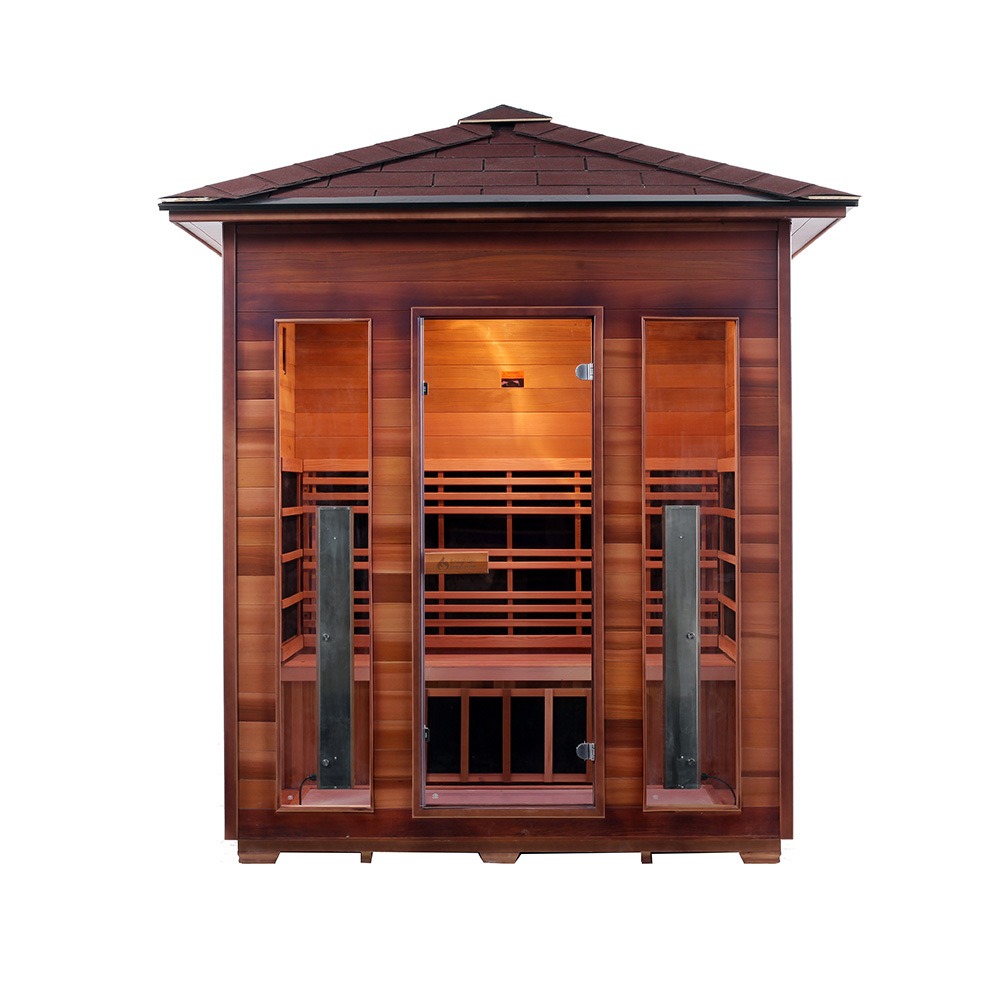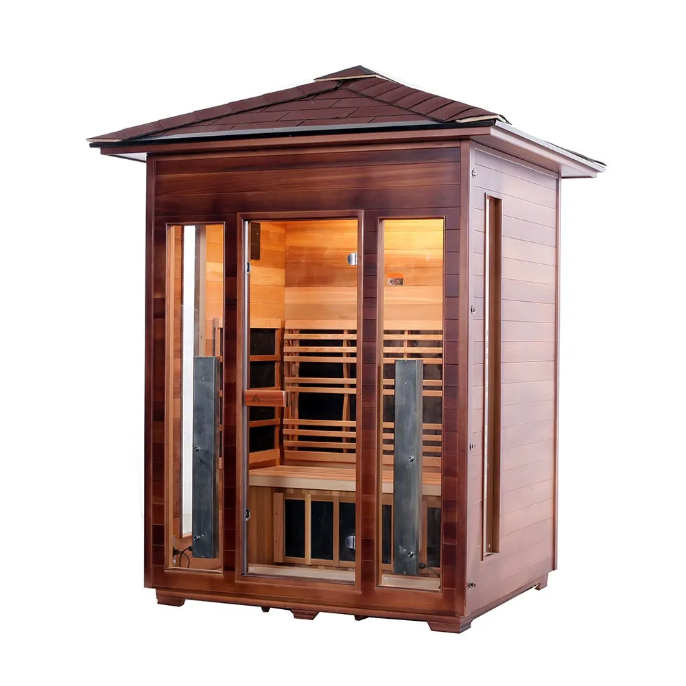 Бұл ашық сауна канадалық батыс қызыл балқарағайдан немесе канадалық гемлоктан жасалған. Ағаш коррозияға және ылғалға төзімді, сондай-ақ құрылымдық тұрақтылыққа мақтанады. Аралық инфрақызыл талшықты жылу технологиясымен жабдықталған, ол тез қызады және жылуды біркелкі бөледі. Аулалар, балкондар, вилла бақтары, бассейндер және курорттар сияқты ашық орталар үшін қолайлы.